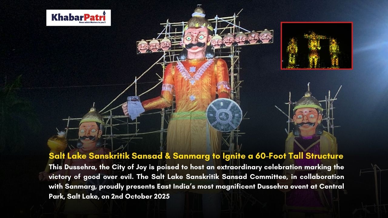 Kolkata : This Dussehra, the City of Joy is poised to host an extraordinary celebration marking the victory of good over evil. The Salt Lake Sanskritik Sansad Committee, in collaboration with Sanmarg, proudly presents East India’s most magnificent Dussehra event at Central Park, Salt Lake, on 2nd October 2025. True to tradition, the evening will showcase the fiery destruction of a majestic 60-foot Ravana effigy, accompanied by 50-foot effigies of Meghnad and Kumbhakaran.