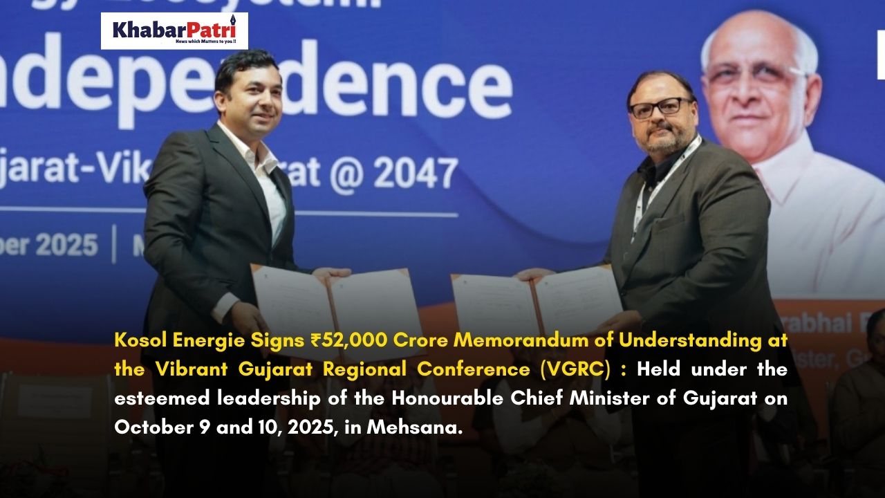 In a groundbreaking move to shape India’s clean energy landscape, Kosol Energie Pvt. Ltd., under the leadership of its Chairman & Managing Director, Mr. Kalpesh Kalathia, has entered into a substantial ₹52,000 Crore Memorandum of Understanding (MoU) during the Vibrant Gujarat Regional Conference (VGRC) held in Mehsana.