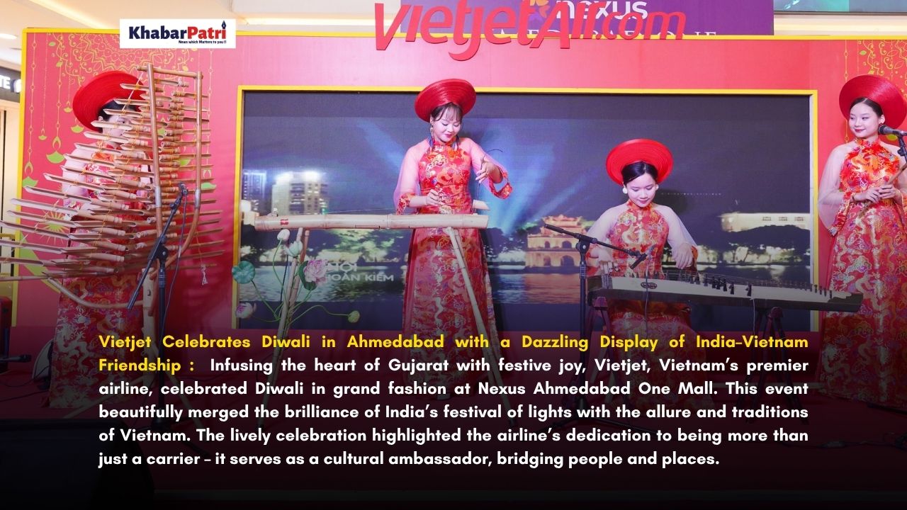 Ahmedabad: Infusing the heart of Gujarat with festive joy, Vietjet, Vietnam’s premier airline, lavishly celebrated Diwali at Nexus Ahmedabad One Mall. This event beautifully merged the brilliance of India’s festival of lights with the allure and traditions of Vietnam. The lively celebration highlighted the airline’s dedication to being more than just a carrier – it serves as a cultural ambassador, bridging people and places. The standout feature of the evening was the stunning centrepiece, “Tunnel of Light,” inspired by Diwali’s theme of “light overcoming darkness.” This immersive installation, which showcased images of iconic tourist spots from India and Vietnam, captivated hundreds of visitors who came to explore, snap photos, and soak in the festive atmosphere.