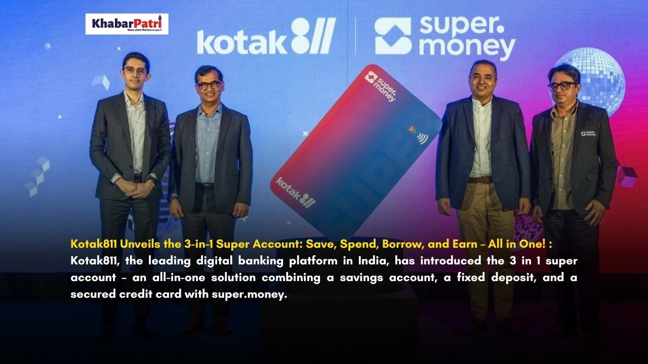 Mumbai : Kotak811, the leading digital banking platform in India, has introduced the 3 in 1 super account – an all-in-one solution combining a savings account, a fixed deposit, and a secured credit card with super. money.