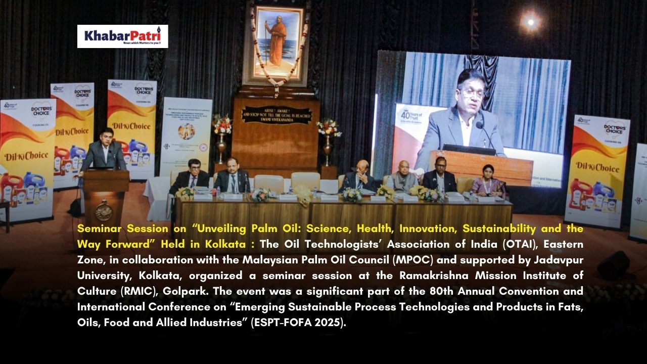 Kolkata : The Oil Technologists’ Association of India (OTAI), Eastern Zone, in collaboration with the Malaysian Palm Oil Council (MPOC) and supported by Jadavpur University, Kolkata, organized a seminar session at the Ramakrishna Mission Institute of Culture (RMIC), Golpark. The event was a significant part of the 80th Annual Convention and International Conference on “Emerging Sustainable Process Technologies and Products in Fats, Oils, Food and Allied Industries” (ESPT-FOFA 2025).