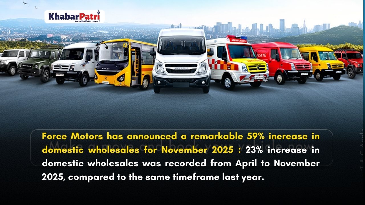 Pune:Force Motors Limited, recognized as India’s largest van manufacturer and a prominent player in the automotive industry, announced a remarkable 59% year-on-year growth in domestic wholesale for November 2025, in comparison to the same period in 2024.