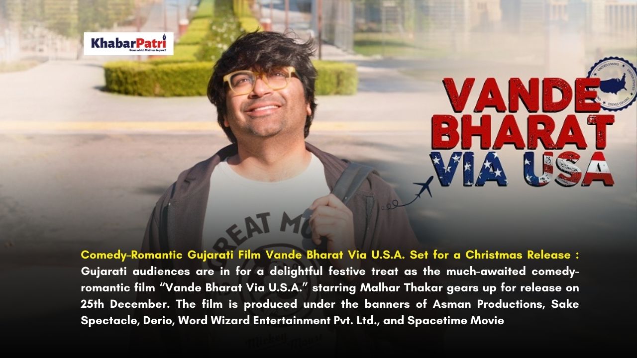 Ahmedabad : Gujarati audiences are in for a delightful festive treat as the much-awaited comedy-romantic film “Vande Bharat Via U.S.A.” starring Malhar Thakar gears up for release on 25th December. The film is produced under the banners of Asman Productions, Sake Spectacle, Derio, Word Wizard Entertainment Pvt. Ltd., and Spacetime Movies.