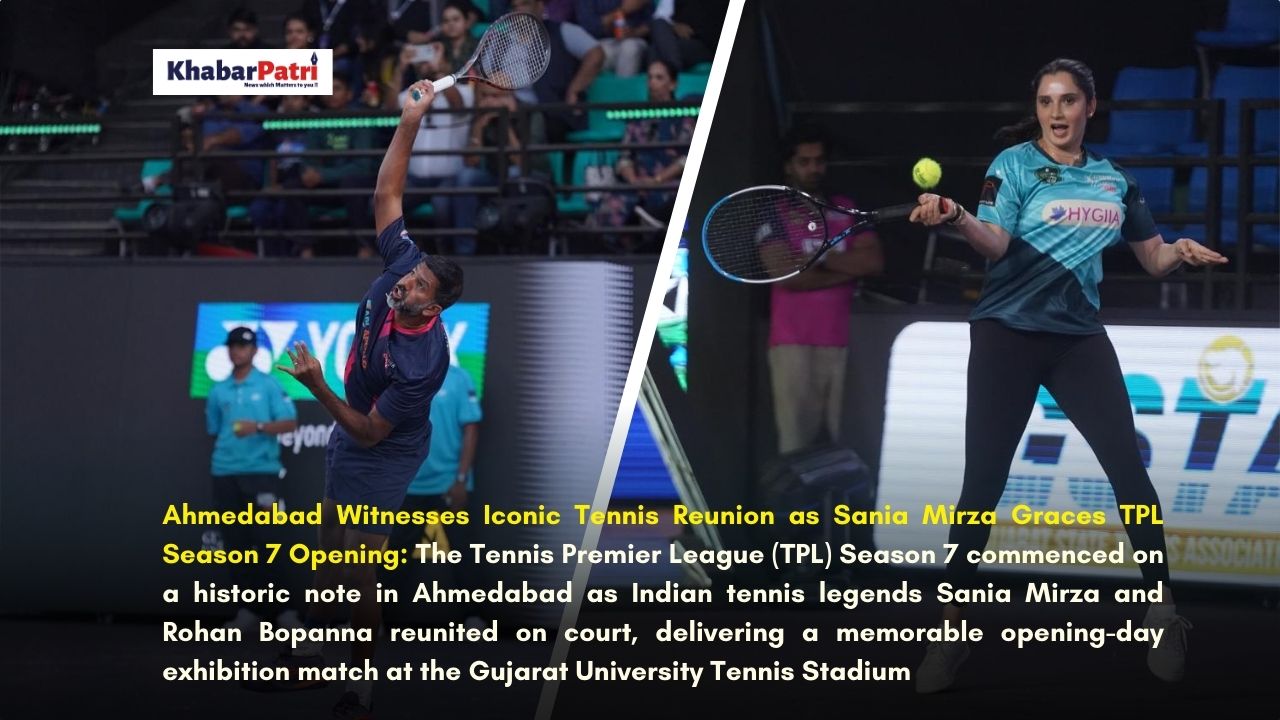 Ahmedabad: The Tennis Premier League (TPL) Season 7 commenced on a historic note, with Indian tennis legends Sania Mirza and Rohan Bopanna reunited on court, delivering a memorable opening-day exhibition match at the Gujarat University Tennis Stadium.