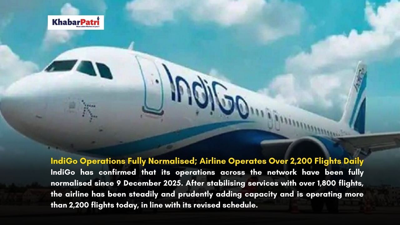 National :IndiGo has confirmed that its operations across the network have been fully normalised since 9 December 2025. After stabilising services with over 1,800 flights, the airline has been steadily and prudently adding capacity and is operating more than 2,200 flights today, in line with its revised schedule.