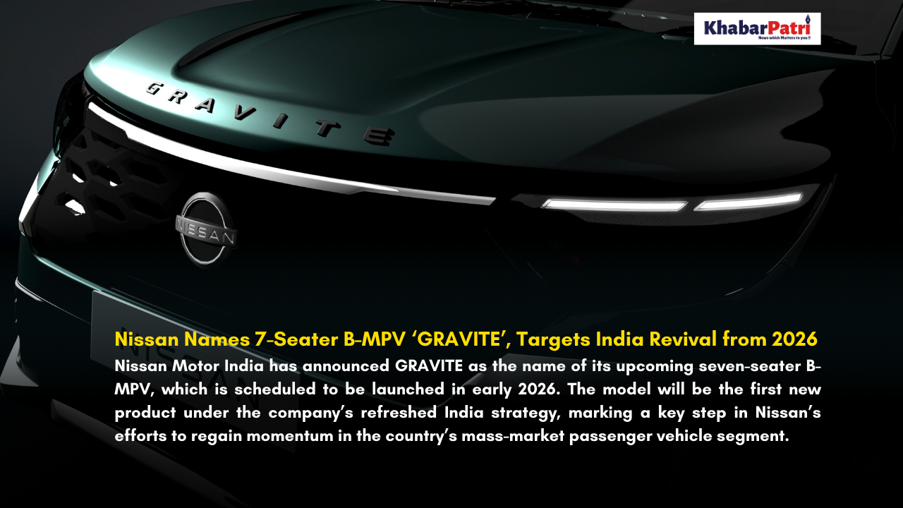 Gurugram : Nissan Motor India has announced GRAVITE as the name of its upcoming seven-seater B-MPV, which is scheduled to be launched in early 2026. The model will be the first new product under the company’s refreshed India strategy, marking a key step in Nissan’s efforts to regain momentum in the country’s mass-market passenger vehicle segment.