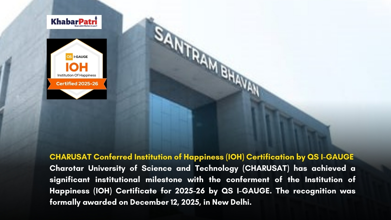 New Delhi: Charotar University of Science and Technology (CHARUSAT) has achieved a significant institutional milestone with the conferment of the Institution of Happiness (IOH) Certificate for 2025–26 by QS I-GAUGE. The recognition was formally awarded on December 12, 2025, in New Delhi.