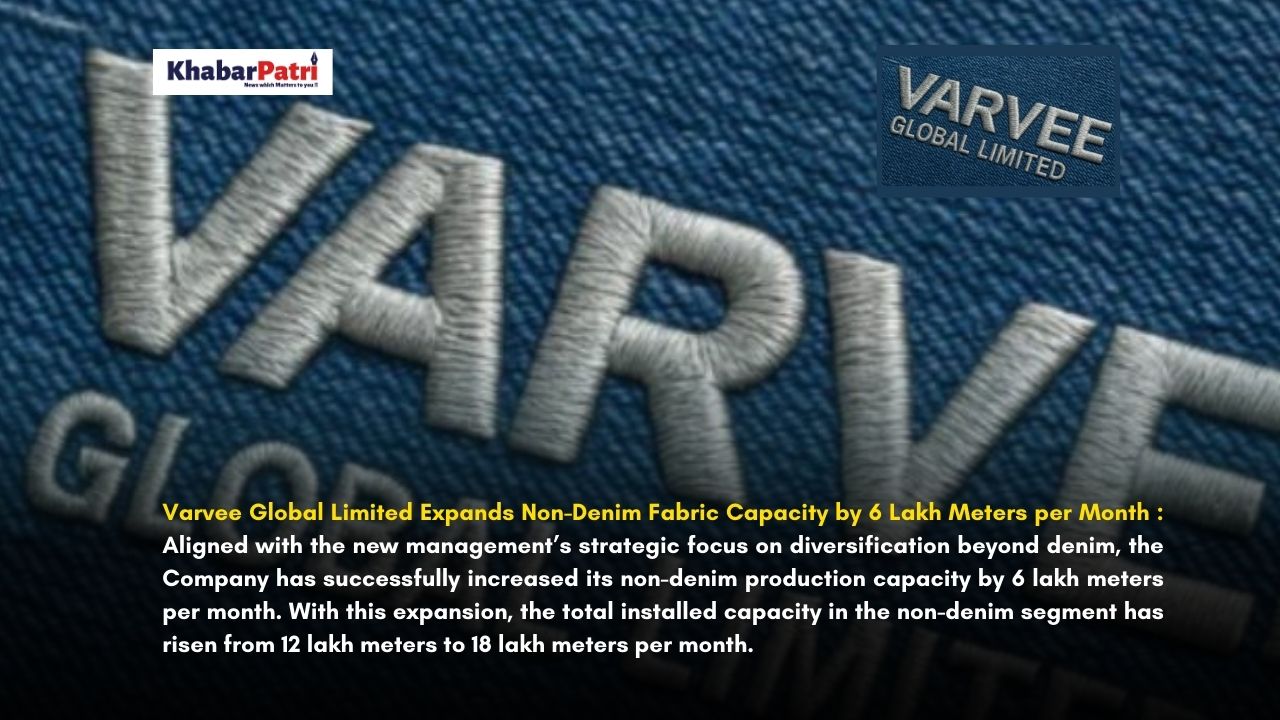 Ahmedabad: Varvee Global Limited (formerly known as Aarvee Denims and Exports Limited) (NSE: VGL | BSE: 514274), a leading textile manufacturing company, has announced a significant expansion of its production capacity in the non-denim segment, encompassing shirting and suiting fabrics.