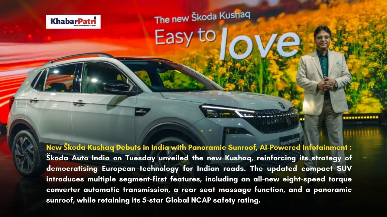 Kochi: Škoda Auto India on Tuesday unveiled the new Kushaq, reinforcing its strategy of democratising European technology for Indian roads. The updated compact SUV introduces multiple segment-first features, including an all-new eight-speed torque converter automatic transmission, a rear seat massage function, and a panoramic sunroof, while retaining its 5-star Global NCAP safety rating.