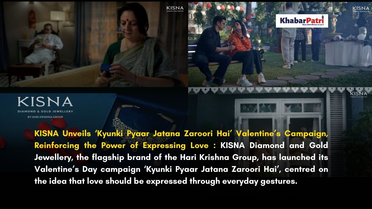 Mumbai : KISNA Diamond and Gold Jewellery, the flagship brand of the Hari Krishna Group, has launched its Valentine’s Day campaign titled ‘Kyunki Pyaar Jatana Zaroori Hai’, highlighting the importance of expressing love through simple, meaningful gestures. Rooted in the brand’s philosophy “Khushi Ke Har Pal Ke Liye KISNA,” the campaign features a 125-second emotionally driven film that blends warmth, subtle humour, and realism to underline that love may exist every day, but expression is what strengthens relationships.