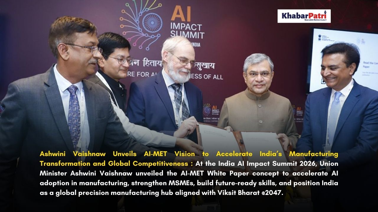 New Delhi : In a strategic push to accelerate India’s transition toward advanced manufacturing, Union Minister for Electronics and Information Technology Ashwini Vaishnaw outlined the country’s Artificial Intelligence priorities for the Manufacturing Engineering Technology (MET) ecosystem at the India AI Impact Summit 2026. The high-level convening brought together global academicians, industry leaders, policymakers, and technology experts to chart a collaborative roadmap for embedding AI across India’s manufacturing value chains.