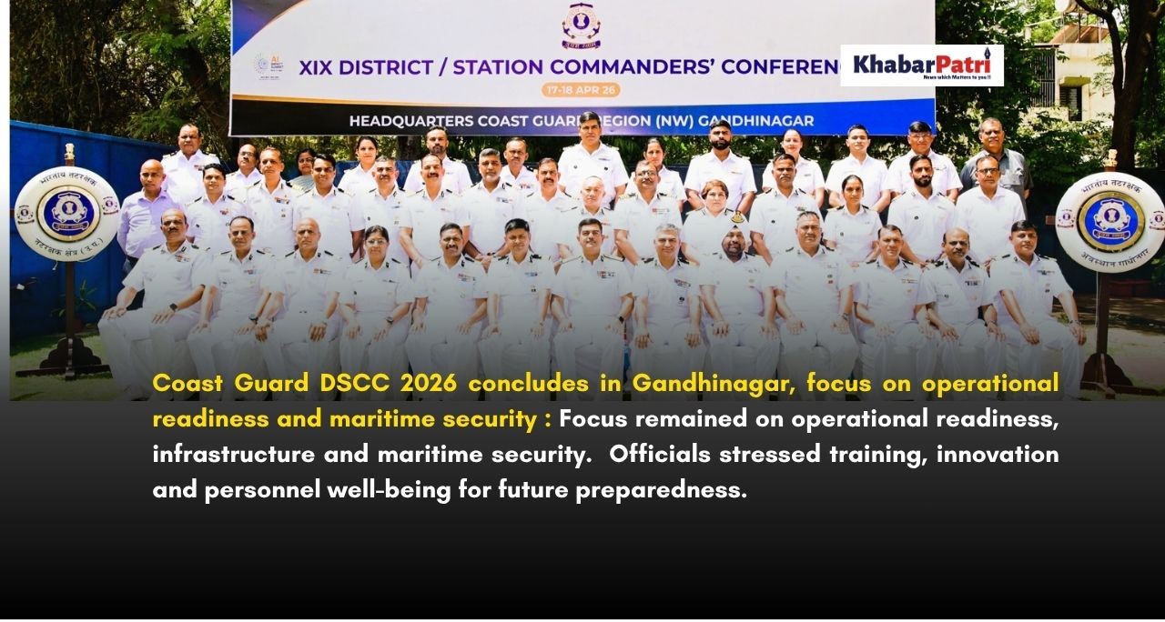 Gandhinagar: The XIXth District and Station Commanders’ Conference (DSCC) and XVIth Regional Works Conference 2026 concluded at the Coast Guard Regional Headquarters (North West) in Gandhinagar after two days of deliberations on operational preparedness and maritime security.