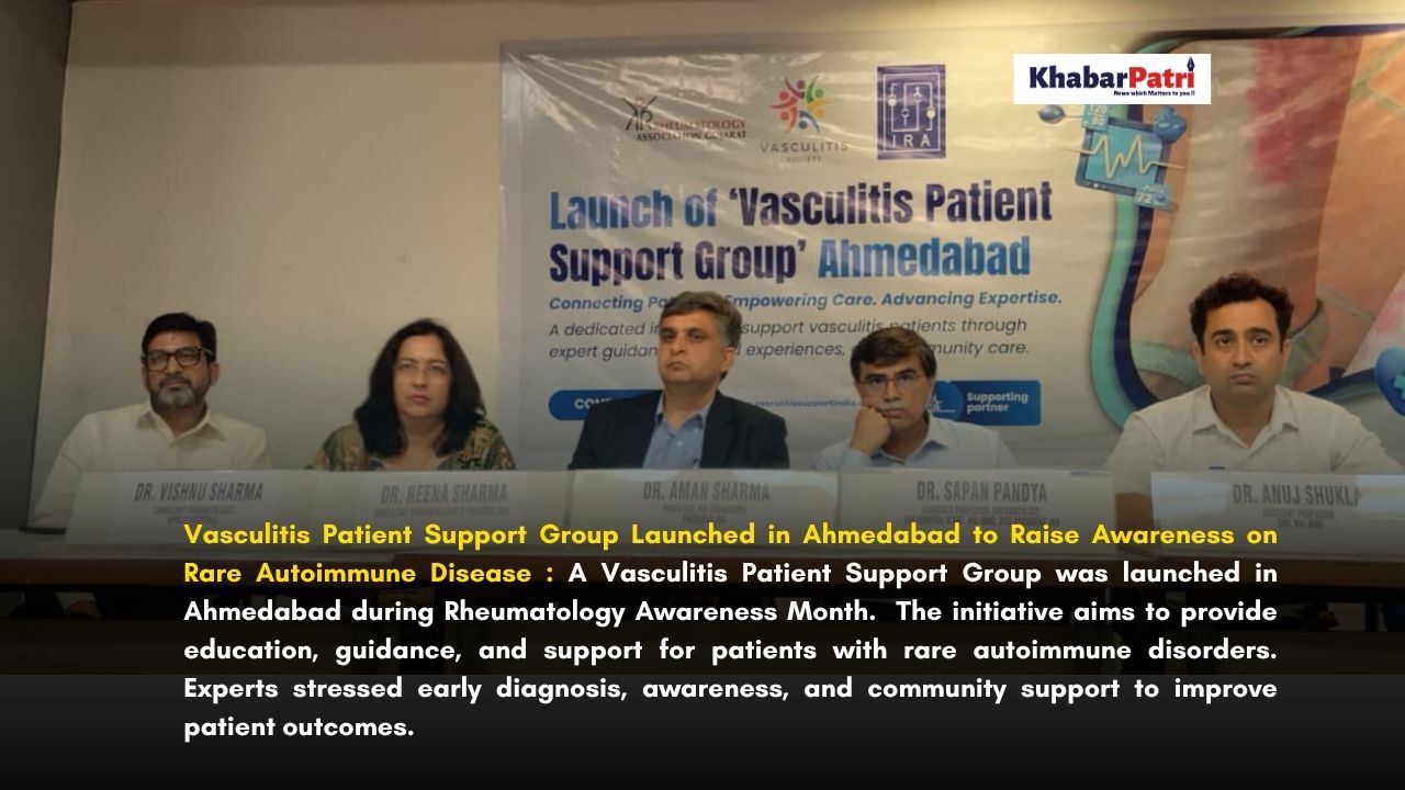 Ahmedabad: Marking Rheumatology Awareness Month, the Vasculitis Society of India, in collaboration with the Rheumatology Association of Gujarat (RAG), launched the Vasculitis Patient Support Group in Ahmedabad on Saturday. The initiative aims to support patients affected by vasculitis, a rare group of autoimmune disorders that cause inflammation of blood vessels.