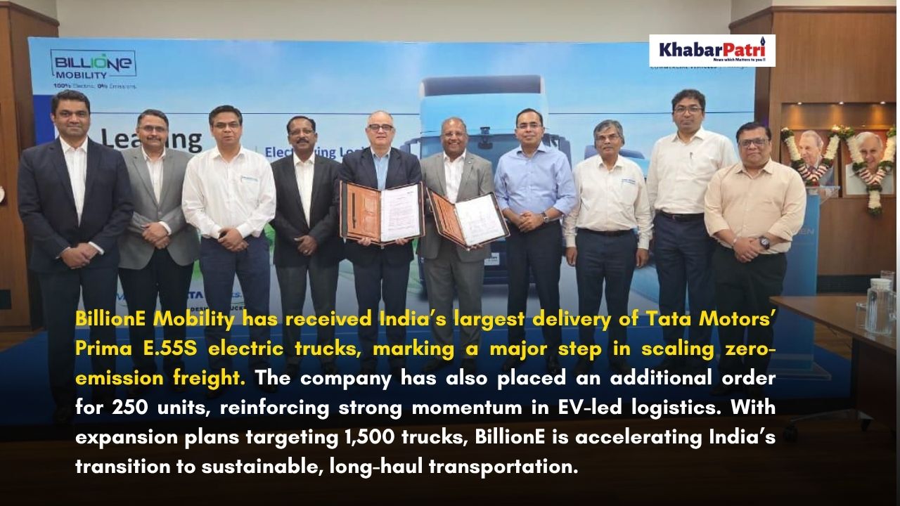 India : BillionE Mobility, a fast-growing electric mobility-as-a-service provider, has received India’s largest delivery of electric trucks—Tata Motors’ Prima E.55S—marking a major milestone in scaling zero-emission freight operations across the country. As part of this development, the company has begun integrating these electric prime movers into its expanding heavy-duty EV fleet. Reinforcing its long-term commitment to sustainable logistics, BillionE Mobility has already achieved over 3 million green kilometres and has now placed an additional order for 250 units, signalling strong momentum in the adoption of electric trucking for long-haul operations.