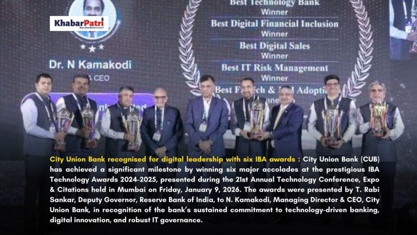 Mumbai/Chennai : City Union Bank (CUB) has achieved a significant milestone by winning six major accolades at the prestigious IBA Technology Awards 2024–2025, presented during…